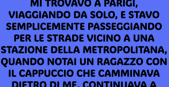 Ero a Parigi, viaggiando da solo. Passeggiavo senza meta per le strade vicino a una stazione della metropolitana, quando notai un ragazzo con il cappuccio che camminava dietro di me. Continuava a voltarsi, come se...