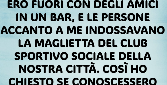 Ero in un bar con degli amici, e le persone accanto a me indossavano la maglietta del club sportivo sociale della nostra città. Così ho chiesto se conoscevano mia moglie, che fa parte del club. Mi hanno risposto: «Sì...