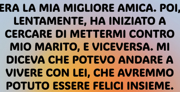 Era la mia migliore amica. Poi, lentamente, ha iniziato a mettermi contro mio marito. Mi diceva che potevo andare a vivere da lei, che insieme saremmo state felici. Con lui, parlava dei suoi problemi di infertilità e di...