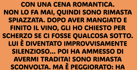 Ieri sera, mio marito mi ha sorpreso con una cena romantica. Non lo fa mai, quindi sono rimasta spiazzata. Dopo aver cenato e finito il vino, gli ho chiesto per scherzo se ci fosse qualcosa che non andava. È rimasto in...