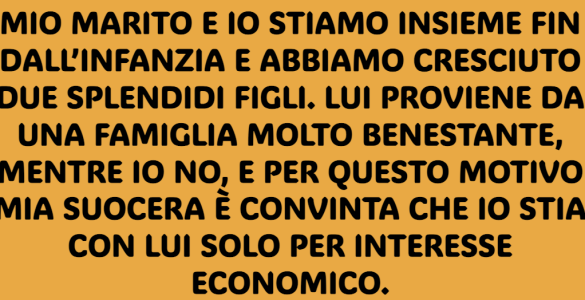 Mio marito e io stiamo insieme fin dall’infanzia e abbiamo cresciuto due splendidi figli. Lui proviene da una famiglia molto benestante, mentre io no, e per questo motivo mia suocera è sempre stata convinta che stessi...