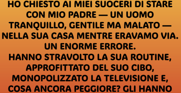 Avevo chiesto ai miei suoceri di stare con mio padre — un uomo dolce, tranquillo ma malato — nella sua casa mentre eravamo via. UN ENORME ERRORE. Hanno stravolto la sua routine, mangiato il suo cibo, monopolizzato la TV...