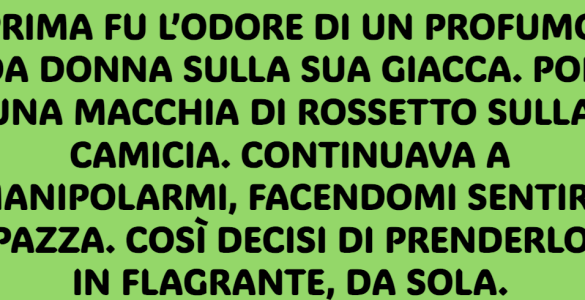 All’inizio fu l’odore di un profumo da donna sulla sua giacca. Poi, una macchia di rossetto sulla camicia. Continuava a farmi sentire pazza, a manipolarmi. Così decisi di prenderlo in flagrante. Da sola. Lo seguii...