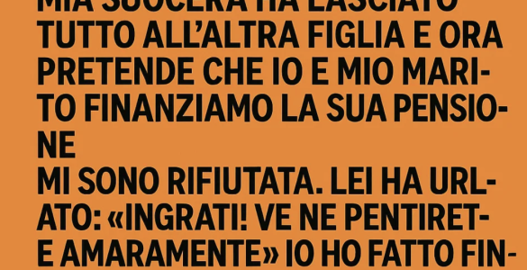 Mia suocera ha lasciato ogni cosa all’altra figlia, e adesso pretende che io e mio marito le finanziamo la pensione. Mi sono rifiutata. Lei ha urlato: «Ingrati! Ve ne pentirete!»Io l’ho sfidata, senza cedere. Il giorno...