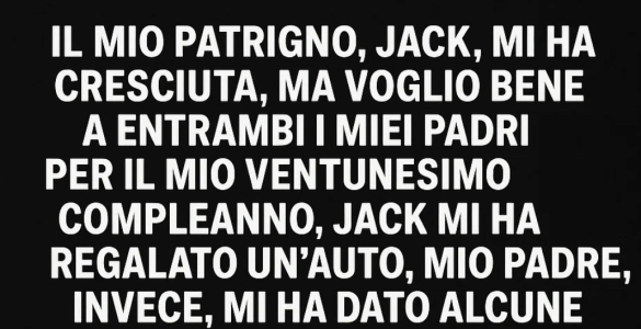 Il mio patrigno, Jack, mi ha cresciuto. Ma voglio bene a entrambi i miei papà. Per il mio ventunesimo compleanno, Jack mi ha regalato un’auto. Mio padre biologico, invece, alcune gift card. Quando ha visto la...