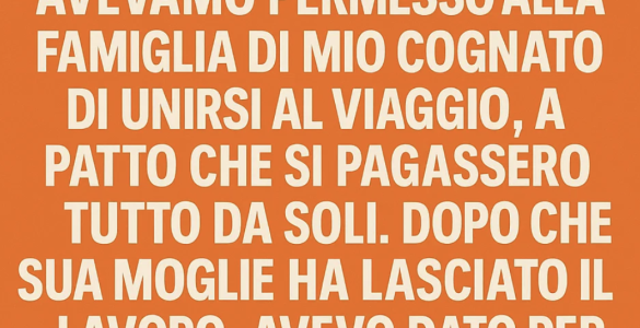Avevamo accettato che la famiglia di mio cognato partecipasse al viaggio, a condizione che si pagassero tutto da soli. Quando sua moglie lasciò il lavoro, davo ormai per scontato che non sarebbero venuti—finché, due...