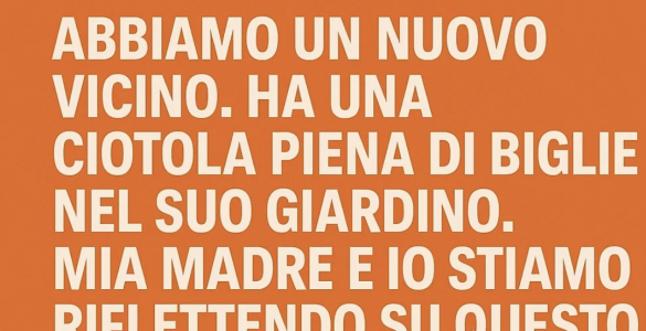 Abbiamo un nuovo vicino.Nel suo giardino c’è una ciotola piena di biglie.Io e mia madre ci pensiamo da giorni. Che cos’è?Siamo troppo timide per chiedere.Non lo conosciamo ancora. Abbiamo finalmente scoperto che si...