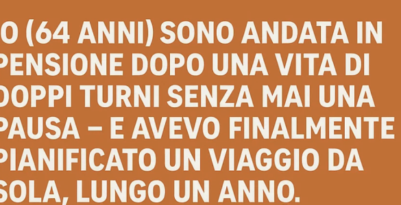 Io (64 anni) ero finalmente andata in pensione dopo una vita intera di doppi turni senza mai una pausa, e avevo pianificato un viaggio da sogno, da sola, per un anno intero. Ma poi mio nipote si è ammalato, e mia figlia...