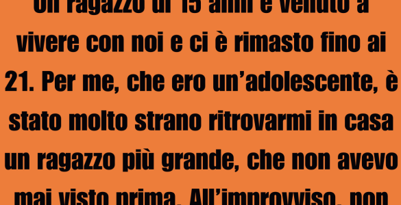 Un ragazzo di quindici anni venne a vivere con noi e rimase fino ai ventuno. Per me, adolescente, fu un’esperienza davvero strana ritrovarmi in casa un ragazzo più grande, che non avevo mai incontrato prima...