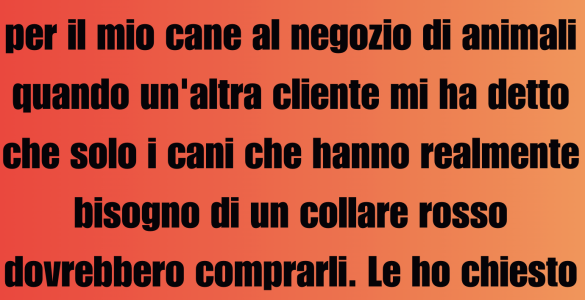 Stavo acquistando un collare rosso per il mio cane in un negozio per animali quando un’altra cliente mi disse che solo i cani che ne avevano davvero bisogno dovevano indossarne uno. Le chiesi cosa intendesse, ma se ne...