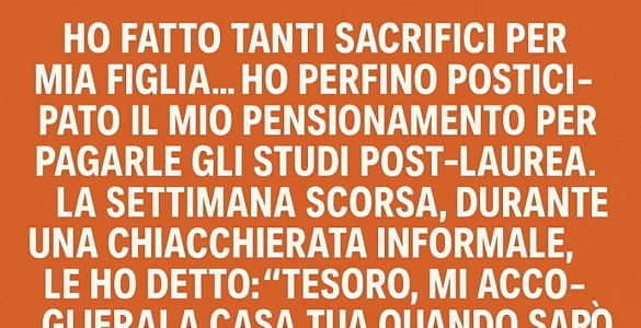 Ho sacrificato tanto per mia figlia. Ho persino rimandato la pensione per finanziarle gli studi post-laurea. La settimana scorsa, durante una chiacchierata informale, le ho chiesto: “Tesoro, mi ospiterai a casa tua...