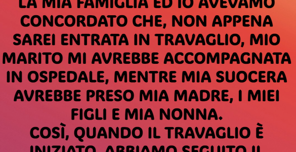 La mia famiglia ed io avevamo concordato un piano preciso: non appena sarei entrata in travaglio, mio marito mi avrebbe accompagnata in ospedale, mentre mia suocera avrebbe preso mia madre, i miei figli e mia nonna. E...