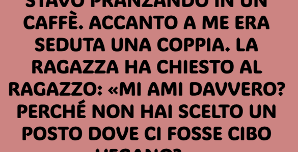 Stavo pranzando in un caffè. Accanto a me c’era una coppia. A un certo punto, la ragazza chiese al ragazzo: «Ma tu mi ami davvero? Perché non hai scelto un posto dove servono cibo vegano?» La risposta di lui, a mio...