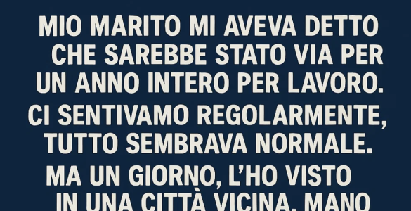 Mio marito mi ha detto che sarebbe stato via per un viaggio di lavoro di un anno. Siamo rimasti in contatto come al solito. Ma un giorno l’ho visto in una città vicina, che teneva per mano mia sorella visibilmente...