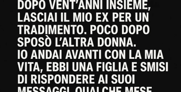 Dopo 20 anni insieme, ho lasciato il mio ex traditore. Poco dopo sposò l’altra donna. Sono andata avanti, ho avuto una figlia e ho ignorato i suoi messaggi. Mesi dopo, è morto in un incidente d’auto e mi ha...
