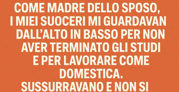 Come mamma dello sposo, i miei suoceri mi guardavano dall’alto in basso perché non finivo la scuola e lavoravo come bidello. Sussurravano e non mi presentavano nemmeno. Ma al ricevimento, ho preso il microfono...