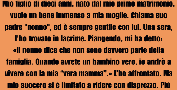 Mio figlio di dieci anni, nato dal mio primo matrimonio, adora mia moglie. Chiama suo padre “nonno” ed è sempre stato affettuoso con lui. Una sera, l’ho trovato in lacrime. Tra i singhiozzi mi ha detto:«Il nonno ha...