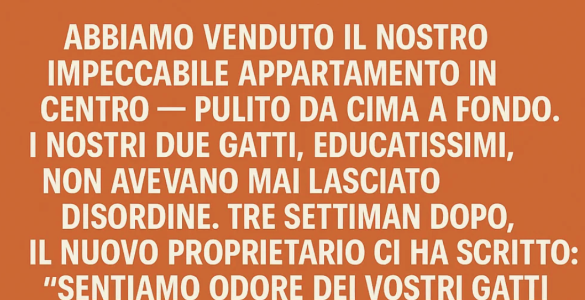 Avevamo venduto il nostro impeccabile appartamento in centro città — pulito da cima a fondo. I nostri due gatti, educatissimi, non avevano mai lasciato un odore fuori posto. Tre settimane dopo, riceviamo un messaggio...