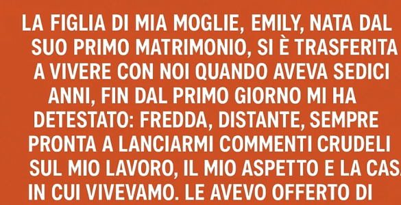 La figlia di mia moglie, Emily, nata dal suo primo matrimonio, si trasferì a vivere con noi quando aveva sedici anni. Mi odiò fin dal primo giorno: fredda, distante, sempre pronta a lanciarmi commenti crudeli sul mio...