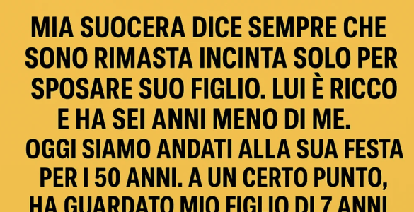 Mia suocera ha sempre detto che sono rimasta incinta solo per sposare suo figlio. Lui è ricco e ha sei anni meno di me. Oggi siamo andati alla sua festa per i 50 anni. Davanti a tutti gli invitati, ha guardato mio...