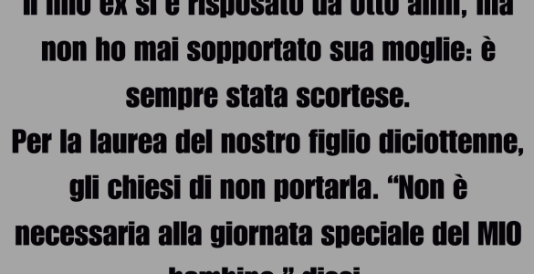 Il mio ex si è risposato da otto anni, ma non ho mai sopportato sua moglie.Scortese. Irritante. Presuntuosa. Per il diploma del nostro figlio diciottenne, gli chiesi di non portarla. “Non serve che lei sia lì nel giorno...
