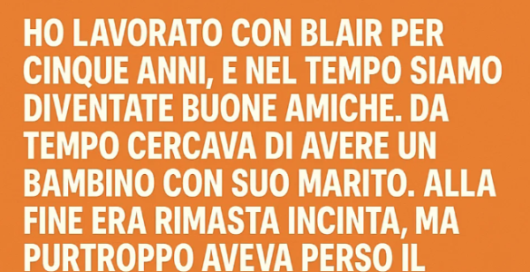 Ho lavorato con Blair per cinque anni. Con il tempo siamo diventate buone amiche. Sapevo che cercava da tempo di avere un bambino con suo marito. Quando finalmente restò incinta, tutti eravamo felici per lei—ma poi, al...