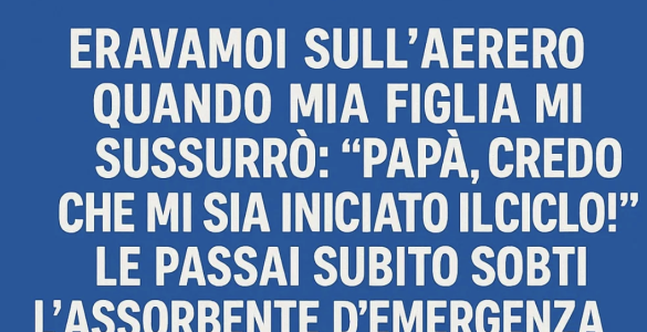 Le passai subito l’assorbente d’emergenza che porto sempre con me, e lei corse in bagno. Cinque minuti dopo, una hostess si avvicinò e disse: “Signore, sua figlia la sta cercando. Sembra un po’ turbata.” Il cuore iniziò...