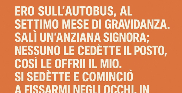 Ero sull’autobus, incinta di sette mesi. Salì una donna anziana; nessuno le cedette il posto, così le offrii il mio. Si sedette e iniziò a fissarmi negli occhi. Poco prima di scendere, infilò qualcosa di pesante nella...