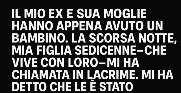 Il mio ex e sua moglie hanno appena avuto un bambino. La scorsa notte, mia figlia sedicenne, Sari—che vive con loro a settimane alterne—mi ha chiamata in lacrime. Mi ha detto che ora ha il “turno di notte” con il...