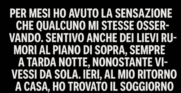 Per mesi ho avuto la sensazione costante di essere osservata. Sentivo dei rumori lievi provenire dal piano di sopra, sempre a tarda notte, anche se vivo da sola. Ieri, tornando a casa, ho trovato il soggiorno...