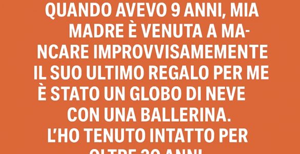 Quando avevo 9 anni, mia madre è venuta a mancare improvvisamente. Il suo ultimo regalo per me è stato un globo di neve con una ballerina. L’ho tenuto intatto per oltre 20 anni. Il mese scorso, mia figlia...