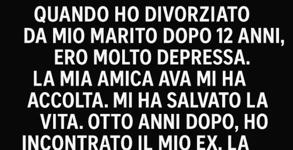 Quando ho divorziato da mio marito dopo 12 anni, ero in uno stato di profonda depressione. La mia amica Ava mi ha accolta. Mi ha salvato la vita. Otto anni dopo, ho incontrato il mio ex. La prima cosa che mi ha chiesto...