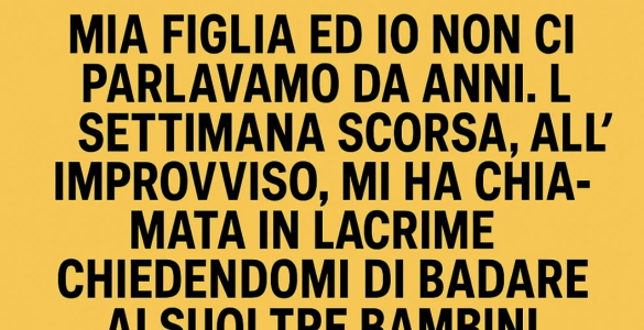 Mia figlia e io non ci parlavamo da anni. La settimana scorsa mi ha chiamata all’improvviso, in lacrime, chiedendomi di badare ai suoi tre bambini. «Devo andare subito in ospedale», piangeva. Io ho rifiutato. Le ho...