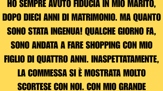 Ho sempre avuto fiducia in mio marito, dopo dieci anni di matrimonio. Ma quanto ero ingenua. Recentemente, sono uscita a fare shopping con mio figlio di quattro anni. Con mia sorpresa, la commessa ci ha accolti in modo...