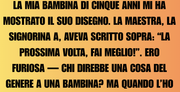 Mia figlia di cinque anni mi aveva mostrato il suo disegno. La maestra, la signorina A, aveva scritto sopra: «La prossima volta, fai meglio!»Ero furiosa — chi direbbe una cosa del genere a una bambina? Ma quando lo...