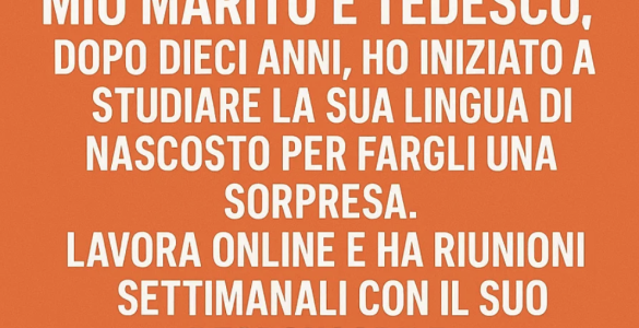 Mio marito è tedesco: un segreto che ha cambiato tutto Mio marito è tedesco. Dopo dieci anni di matrimonio, ho iniziato a studiare la sua lingua di nascosto per sorprenderlo. Lavora online e ha riunioni settimanali con...