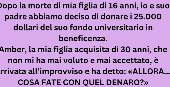 Dopo la morte di mia figlia di 16 anni, io e suo padre abbiamo deciso di donare i 25.000 dollari del suo fondo universitario in beneficenza. Amber, la mia figlia acquisita di 30 anni, che non mi ha mai amata né...