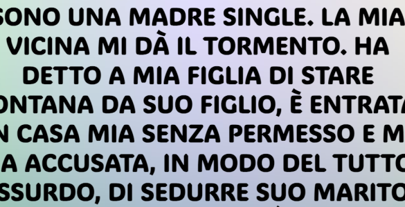 Sono una madre single e la mia vicina è un vero grattacapo. Ha detto a mia figlia di stare lontana da suo figlio, ha fatto irruzione in casa mia e mi ha accusata, in modo assurdo, di sedurre suo marito! Ma il colpo di...