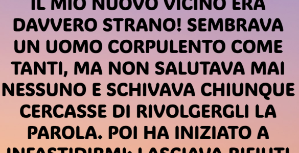 Il mio nuovo vicino era davvero strano! Sembrava un tipo robusto come tanti altri, ma non salutava mai nessuno e schivava chiunque cercasse di parlargli. Poi ha iniziato a infastidirmi: rifiuti lasciati sul mio portico...