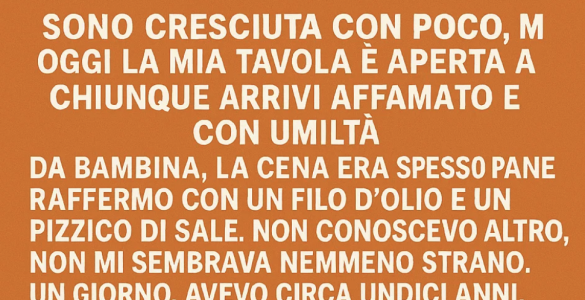 Da bambina, la cena era spesso pane raffermo con un filo d’olio e un pizzico di sale. Non conoscevo altro, non mi sembrava nemmeno strano. Un giorno, avevo circa undici anni, fui invitata a casa di una compagna di...