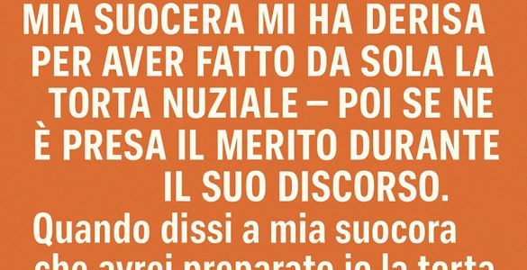 Quando dissi a mia suocera che avrei preparato io la torta del matrimonio, scoppiò a ridere:«Farti da sola la torta? Ma che cos’è, un picnic?»Poi aggiunse: «Beh, suppongo che quando si cresce poveri sia difficile...