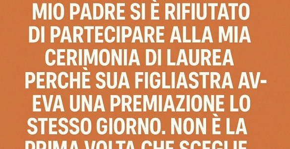 Mio padre si è rifiutato di partecipare alla mia cerimonia di laurea perché sua figliastra aveva una premiazione lo stesso giorno. Non era la prima volta che succedeva. Così gli ho detto di dimenticarsi di far parte...