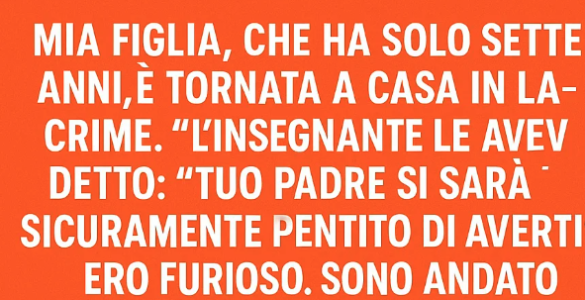 Mia figlia, sette anni, è tornata a casa in lacrime. L’insegnante le aveva detto: «Tuo padre si sarà sicuramente pentito di averti!» Ero furioso. Sono andato subito a confrontarmi con quella donna. Mi ha guardato con...