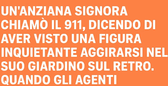 Un’anziana signora telefonò al 911, dicendo di aver visto una figura inquietante aggirarsi nel suo giardino sul retro. Quando gli agenti arrivarono, trovarono la porta aperta. Entrarono e la trovarono seduta in...
