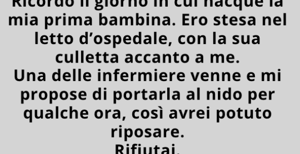 Ricordo quando nacque la mia prima figlia. Ero distesa nel letto d’ospedale, con la sua culletta accanto a me. Un’infermiera entrò e mi propose di portarla al nido per qualche ora, così avrei potuto riposare. Rifiutai...