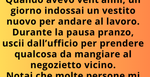 Quando avevo vent’anni, indossai un vestito nuovo per andare al lavoro. Durante la pausa pranzo uscii a comprare qualcosa da mangiare. Notai che molte persone mi guardavano. Mi sentivo bellissima… finché uno sconosciuto...