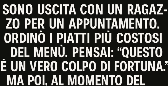 Sono uscita con un ragazzo, convinta di aver incontrato qualcuno di speciale. Ordinò i piatti più costosi del menù. Pensai: “Questo è un buon partito.” Alla fine mi chiese di dividere il conto. Non mostrai quanto la...