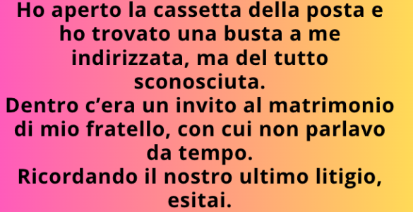 Ho aperto la cassetta della posta e ho trovato una busta a me indirizzata, ma che non riconoscevo. Dentro c’era un invito al matrimonio di mio fratello—con cui non parlavo da anni. Ricordando il nostro ultimo litigio...