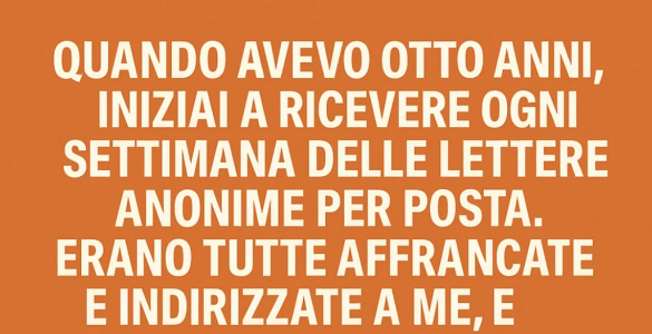 Avevo otto anni quando cominciai a ricevere lettere anonime per posta, ogni settimana. Erano tutte affrancate e indirizzate a me, con frasi strane e sconnesse. I miei genitori si sentirono a disagio e insistettero per...