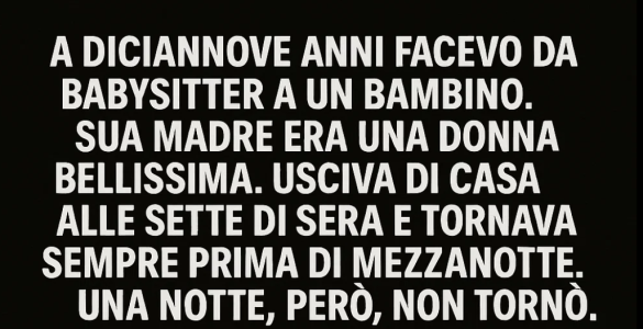 A diciannove anni facevo la babysitter per un bambino. Sua madre, Mirela, era una donna incredibilmente bella. Usciva di casa alle 19:00 e tornava sempre prima di mezzanotte. Una sera, però, non fece ritorno. Cominciai...